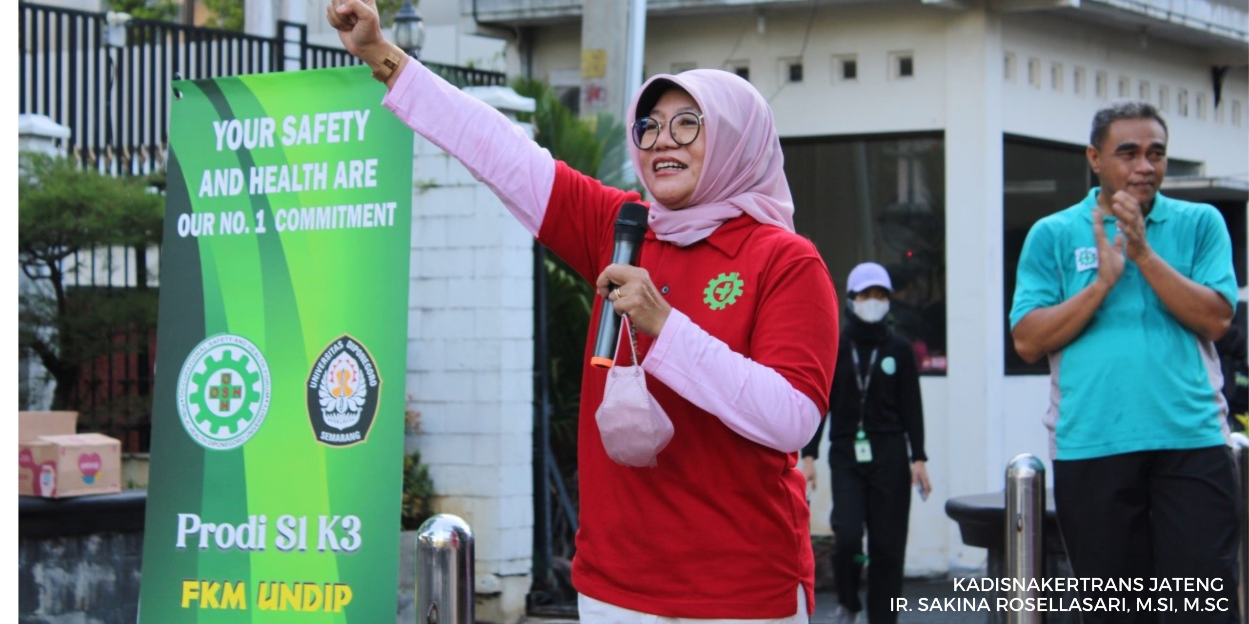 Semarang, 19/2. Salah satu kegiatan dalam Rangkaian Bulan K3 Nasional 2023 di Fakultas Kesehatan Masyarakat Universitas Diponegoro yag bertemakan “Terwujudnya Pekerjaan Layak yang Berbudaya K3 Guna Mendukung Keberlangsungan Usaha di Setiap Tempat Kerja” adalah OSH Festival Bulan K3 Nasional 2023 yang diselenggarakan di depan Kantor Dinas Tenaga Kerja dan Transmigrasi Prov. Jawa Tengah dan Kawasan Car Free Day Simpang Lima Kota Semarang. Kegiatan tersebut diawali dengan Senam bersama di hadiri Civitas Akademika FKM Undip, pegawai Disnakertrans Jateng, mahasiswa OSH Forum, dan masyarakat umum dengan instruktur Dr. Suroto, M.Pd.